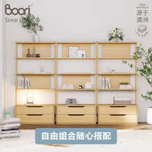 Boori进口实木落地书架一体靠墙客厅收纳架家用现代简约书房置物柜 榉木色*2