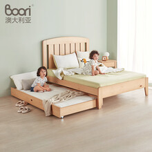Boori爱丽丝实木儿童床男孩女孩公主床抽屉床双人床简约单人床GB 杏仁色【双人床】内径1.36*1.9m